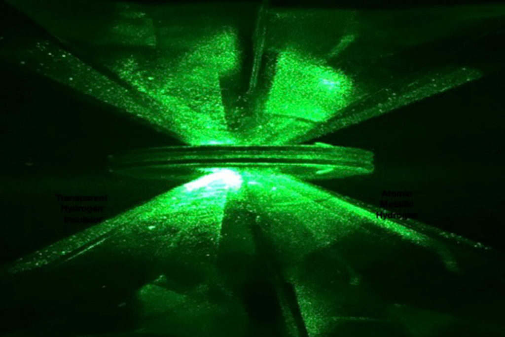 Per crearlo in laboratorio, i due ricercatori hanno torchiato all’inverosimile un minuscolo campione di idrogeno, imprimendogli una pressione di 495 gigaPascal, un livello che non si sperimenta nemmeno al centro della Terra.