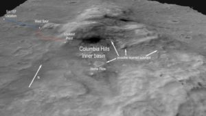 Columbia Hills, dove il rover Spirit aveva già analizzato il terreno e dove erano state trovate rocce silice simili ai depositi di minerali idrotermali sulla Terra.